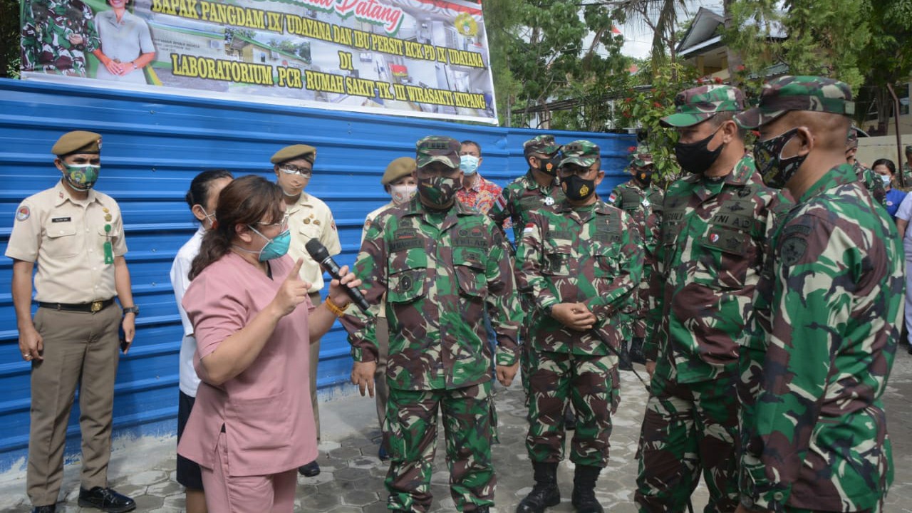 Setiba di Lab PCR RST Tk III Wira Sakti Kupang, Pangdam IX/Udayana menerima laporan dari Dandenkesyah 09.04.01 Kupang Letkol Ckm dr Agus Saptiadi.