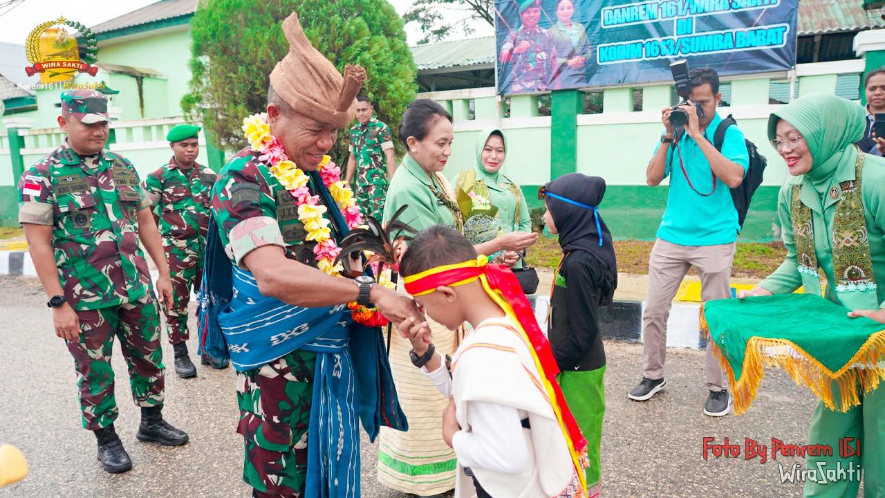 Komandan Korem 161/Wira Sakti Brigjen TNI Joao Xavier Barreto Nunes, S.E., M.M., yang didampingi Ketua Persit KCK Koorcab Rem 161 PD IX/Udayana Ibu Paula Nunes dan Kasi Pers Korem 161/Wira Sakti Kolonel Inf Aryanto Sunu Kuncoro melakukan kunjungan kerja ke wilayah Kodim 1601/Sumba Timur di Kelurahan Hambala , Kecamatan Kota Waingapu Kabupaten Sumba Timur. Selasa (10/12/2024).