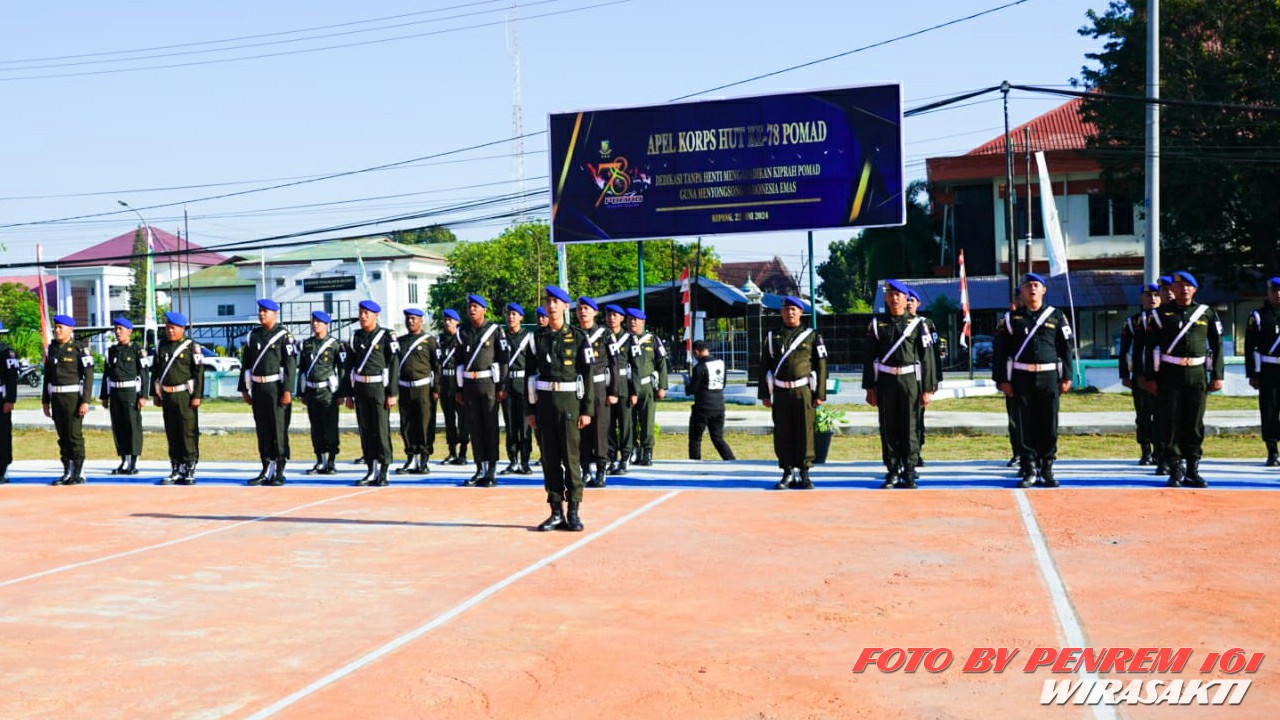 Detasemen Polisi Militer (Denpom) IX/I Kupang gelar apel korps Hari Ulang Tahun (HUT) ke-78 Polisi Militer Angkatan Darat (Pomad), Jl. Polisi Militer No.9, Oebobo, Kec. Oebobo, Kota Kupang, Sabtu (22/06/2024).