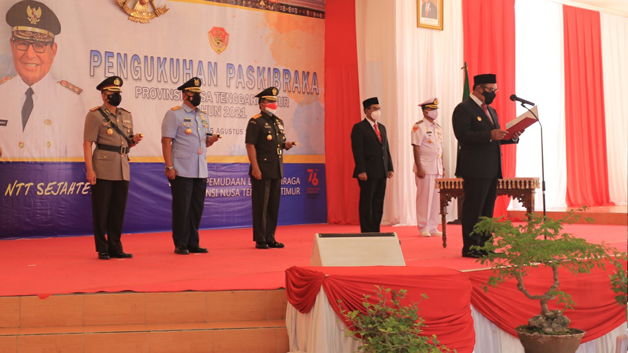 Penerangan161 Komandan Korem 161/ Wira Sakti, Brigjen TNI Legowo W.R. Jatmiko, S.I.P., M.M. memimpin Serah Terima Jabatan, Tradisi Penerimaan dan Pelepasan Komandan Kodim 1621/TTS, Komandan Kodim 1625/Ngada dan Komandan Kodim 1629/SBD yang bertempat di Aula Sudirman, Makorem 161/WS pada hari Senin (30/08/2021).